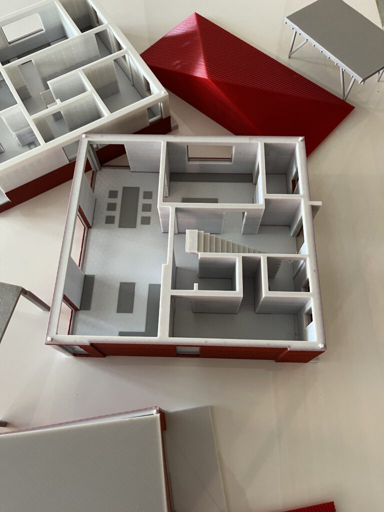 Per 3D Scan des Grundstücks oder Bestandsimmobilie erhalten wir einen ersten Eindruck. Daraus erstellen wir mit Nutzung zeitgemäßer Software eine Vision und erzeugen ein digitales Endmodell mit dem wir den Bau vorab im Maßstab fertigstellen. Dieses kann per VR Brille vorab erlebt oder mit einem Modell aus dem 3D Drucker erkundet werden. Später zieht unser Team mit dem Beton 3D Drucker los auf die Baustelle und nutzt dieselben Modelle aus der Cloud um das Gebäude Schicht für Schicht entstehen zu lassen. Währenddessen sichern unsere Kameratürme die Baustelle und wir erzeugen per Drohne einzigartige Aufnahmen die den Bauablauf ganzheitlich abbilden.